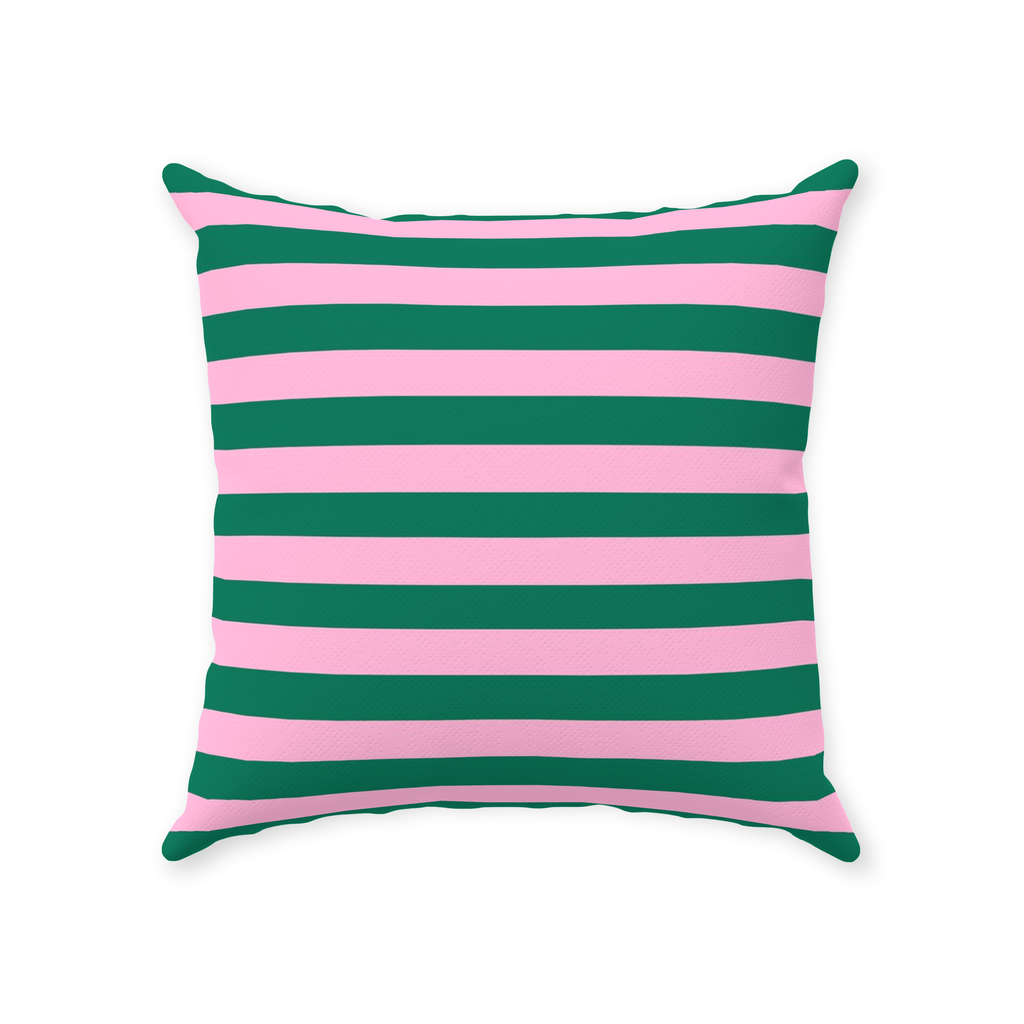 Green and pink stripe throw pillow