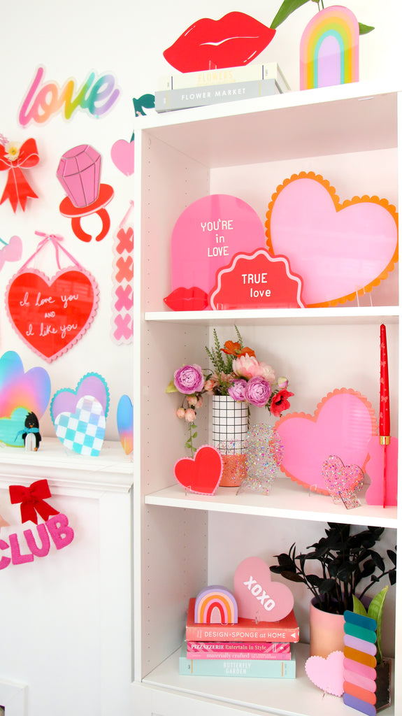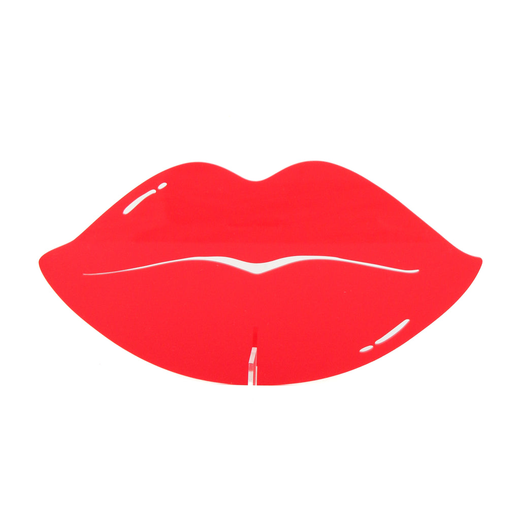 Give me a kiss! 10” wide red acrylic lips. Cones with a clear acrylic stand so you can display on a shelf or mantel.